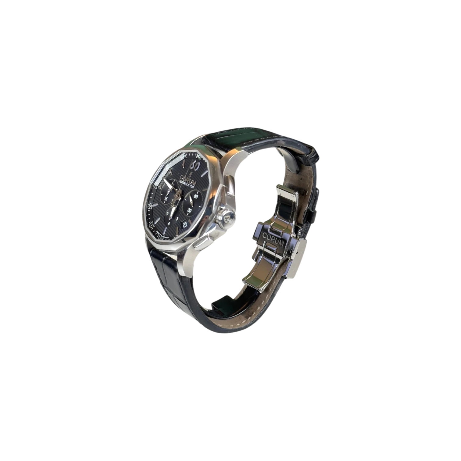 Il Corum Admiral’s Cup del 2016 incarna l’essenza sportiva e marina dello storico modello, simbolo dell’eleganza nautica contemporanea. La caratteristica cassa dodecagonale e le bandiere nautiche sugli indici rendono questo orologio immediatamente riconoscibile. Realizzato in acciaio con movimento automatico di alta precisione, unisce robustezza, design distintivo e forte personalità.