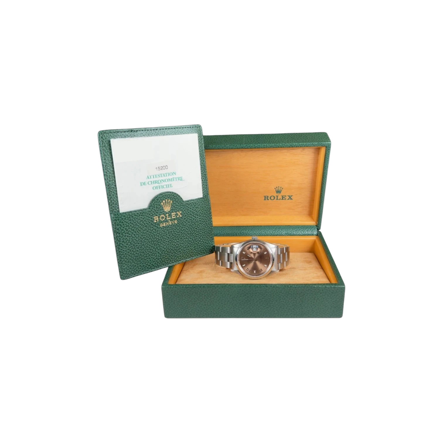 Il Rolex Date ref. 15200 con quadrante rosa del 2002 è un orologio elegante e distintivo della collezione Date. Il quadrante rosa dona al modello uno stile originale e raffinato, mantenendo l’eleganza classica tipica degli orologi Rolex.