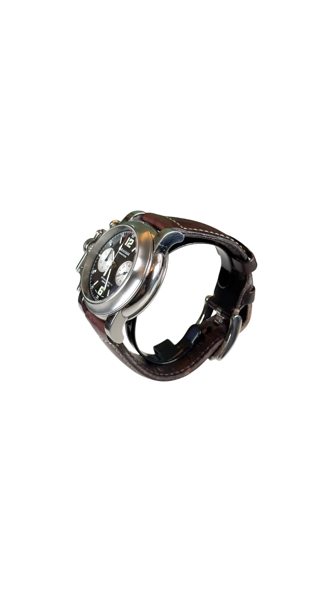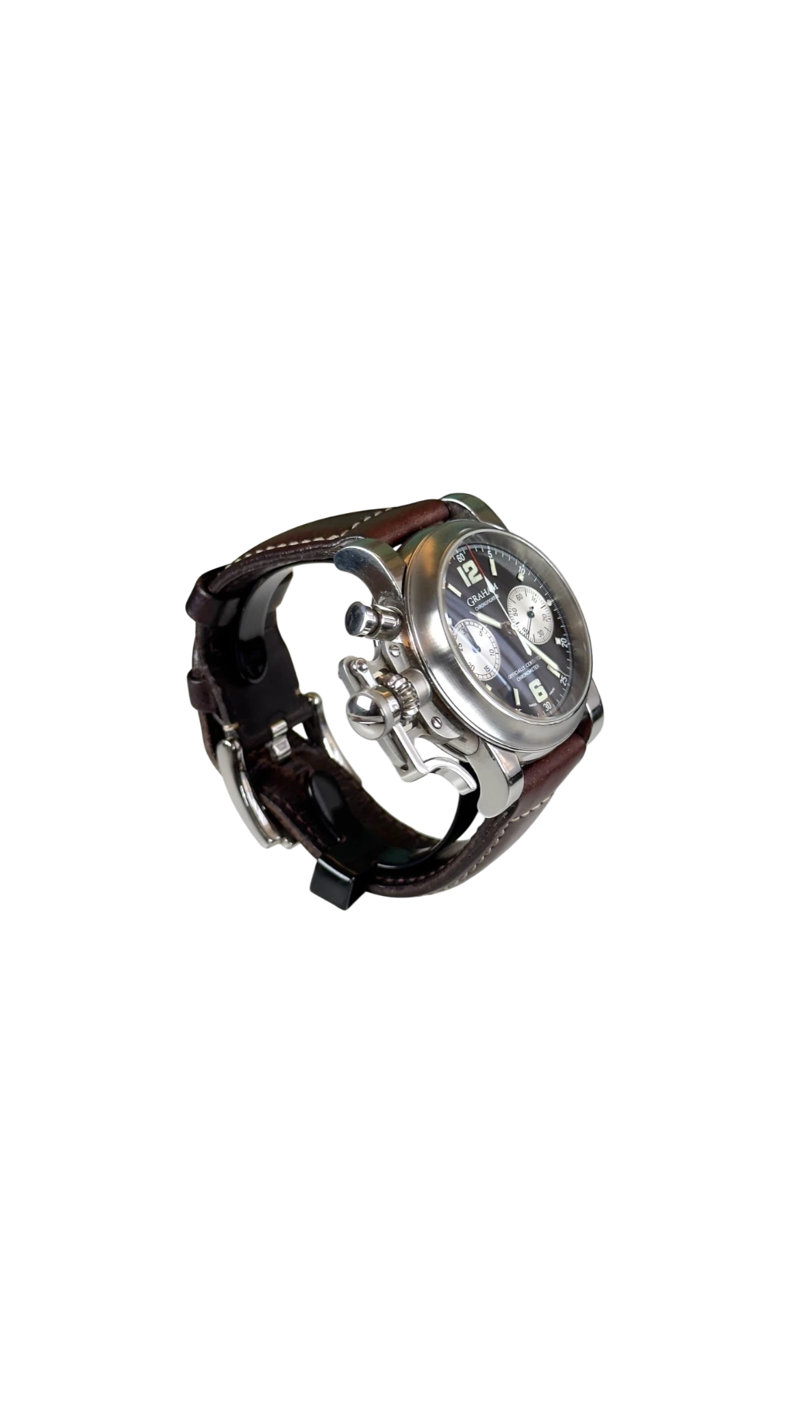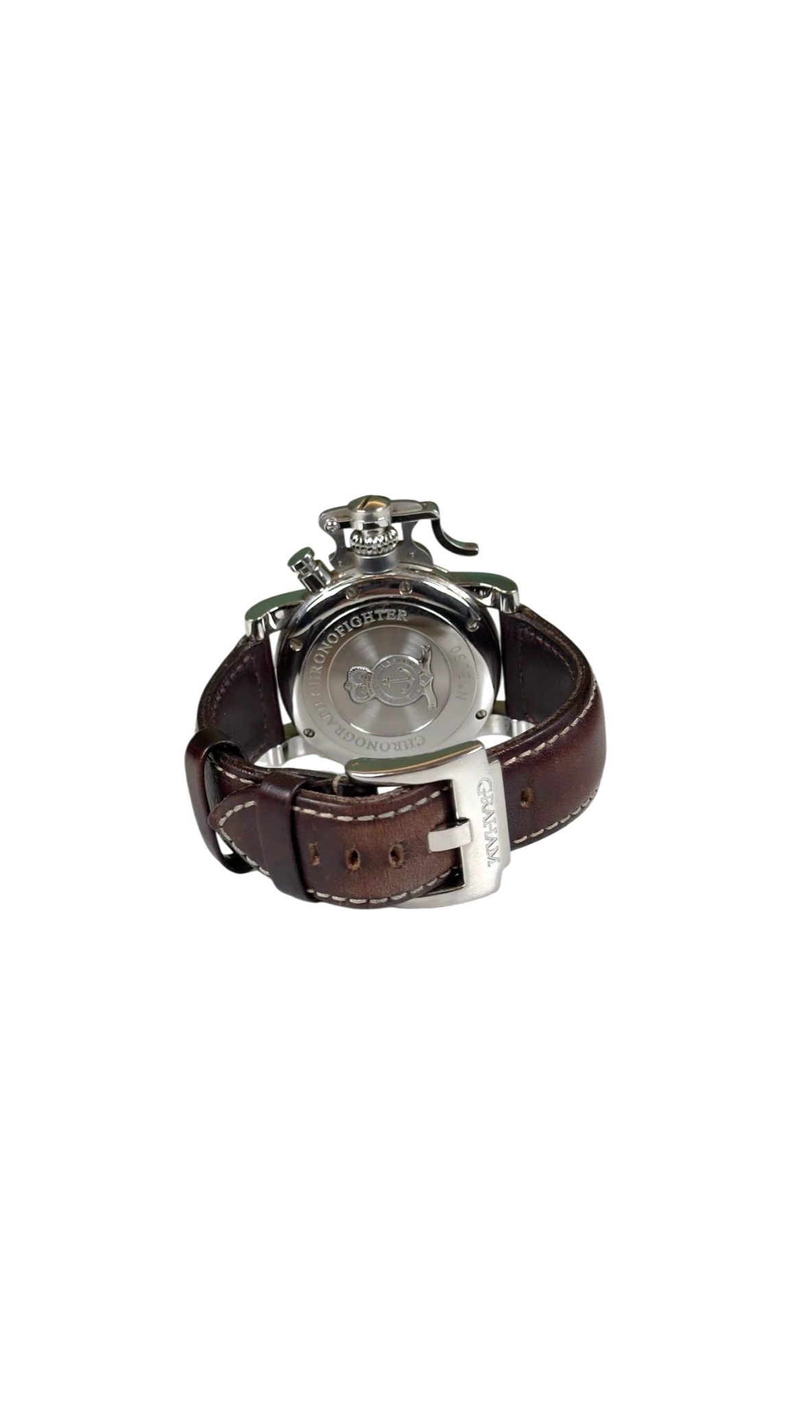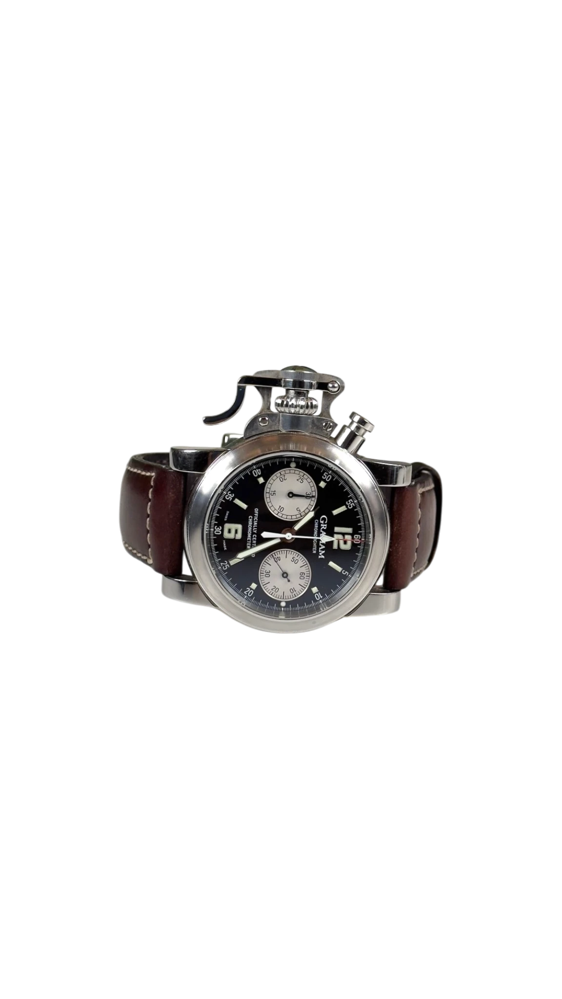 Il Graham Chronofighter Vintage del 2004 è un orologio dal carattere deciso, ispirato agli strumenti militari e ai cronografi aeronautici degli anni ’40. La leva di azionamento del cronografo, elemento distintivo del modello, conferisce un look audace e inconfondibile. La cassa in acciaio di grandi dimensioni, il quadrante bilanciato e la precisione del movimento automatico rendono questo segnatempo un’autentica dichiarazione di stile e meccanica.