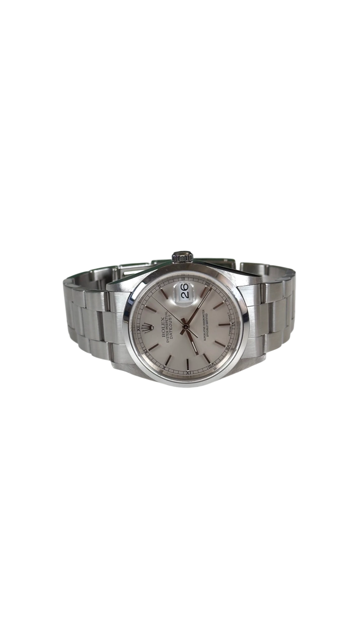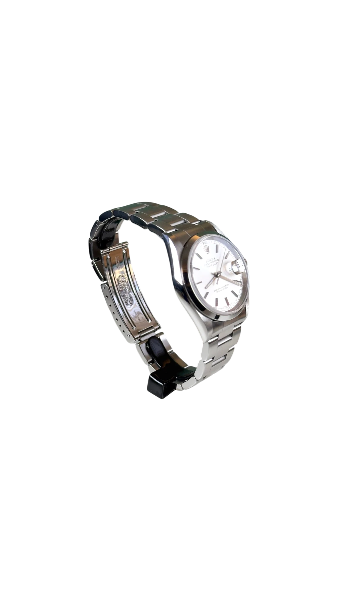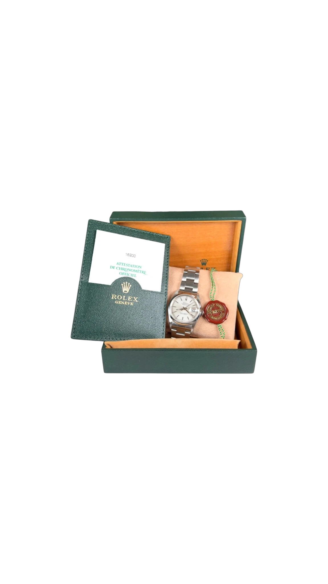 Questo Rolex Datejust 16200 white dial presenta una cassa Oyster da 36 mm in acciaio con lunetta liscia, una configurazione molto equilibrata e versatile. Il quadrante con indici applicati garantisce ottima leggibilità e mantiene il design iconico che ha reso il Rolex Datejust uno degli orologi più riconoscibili al mondo.
