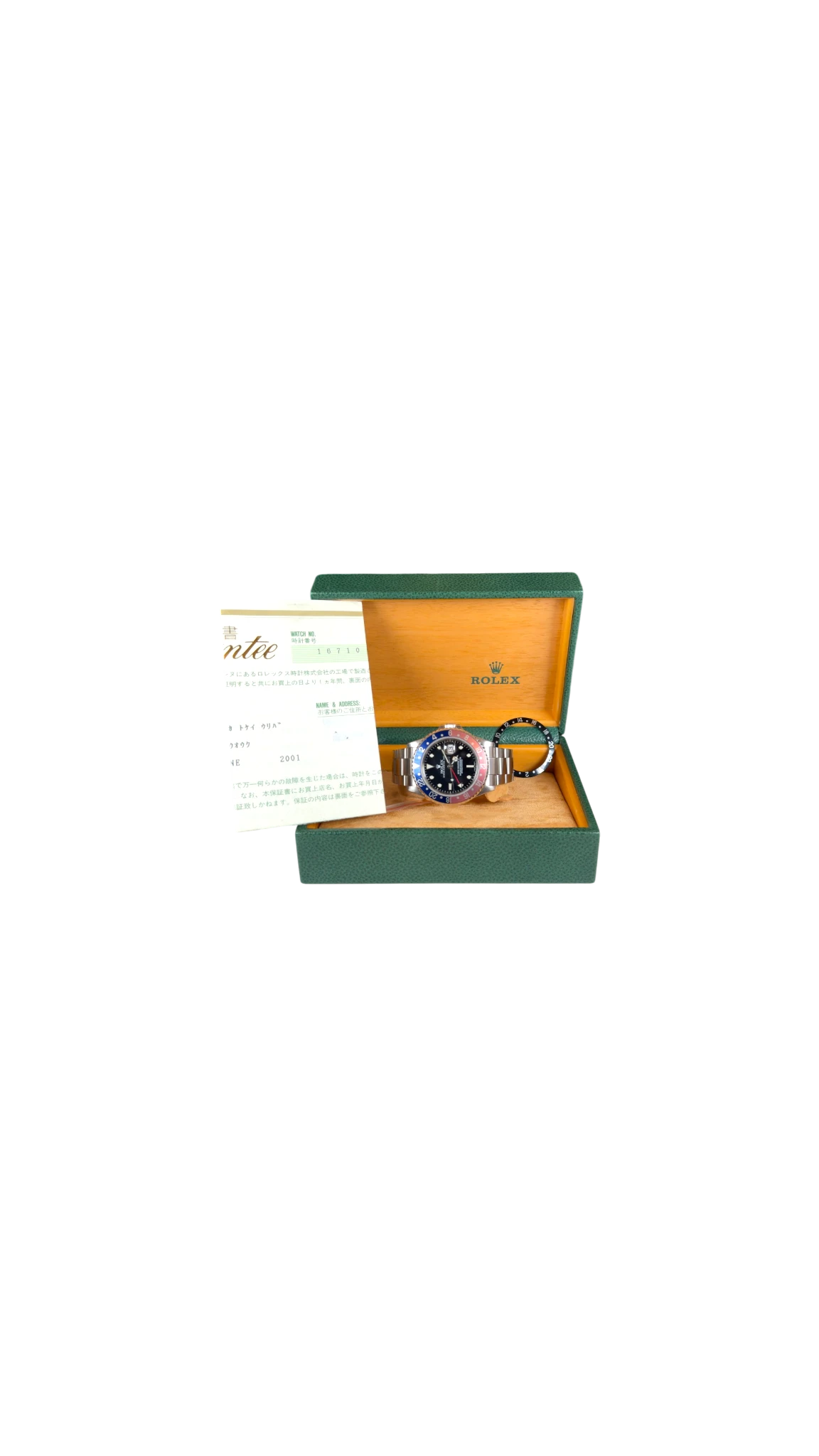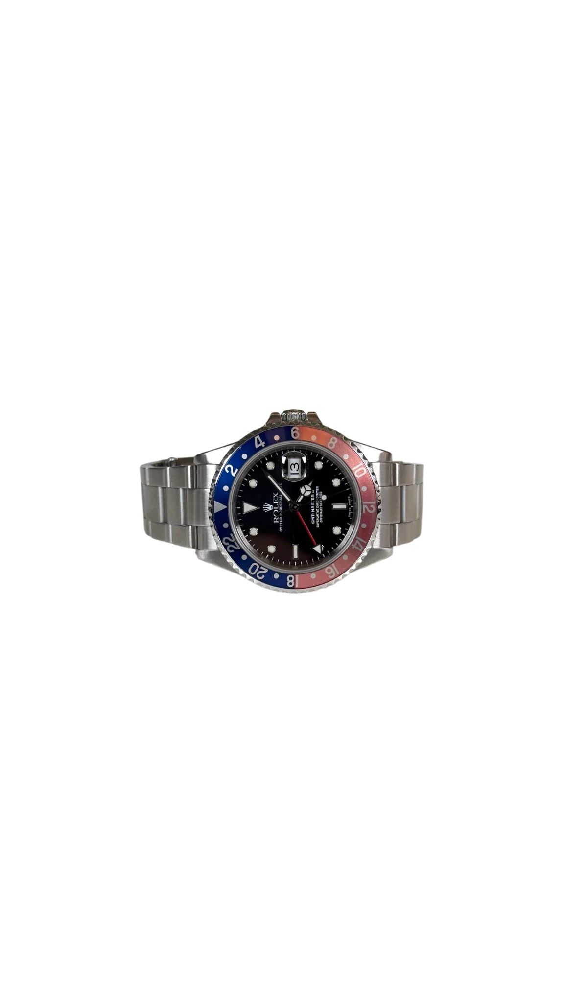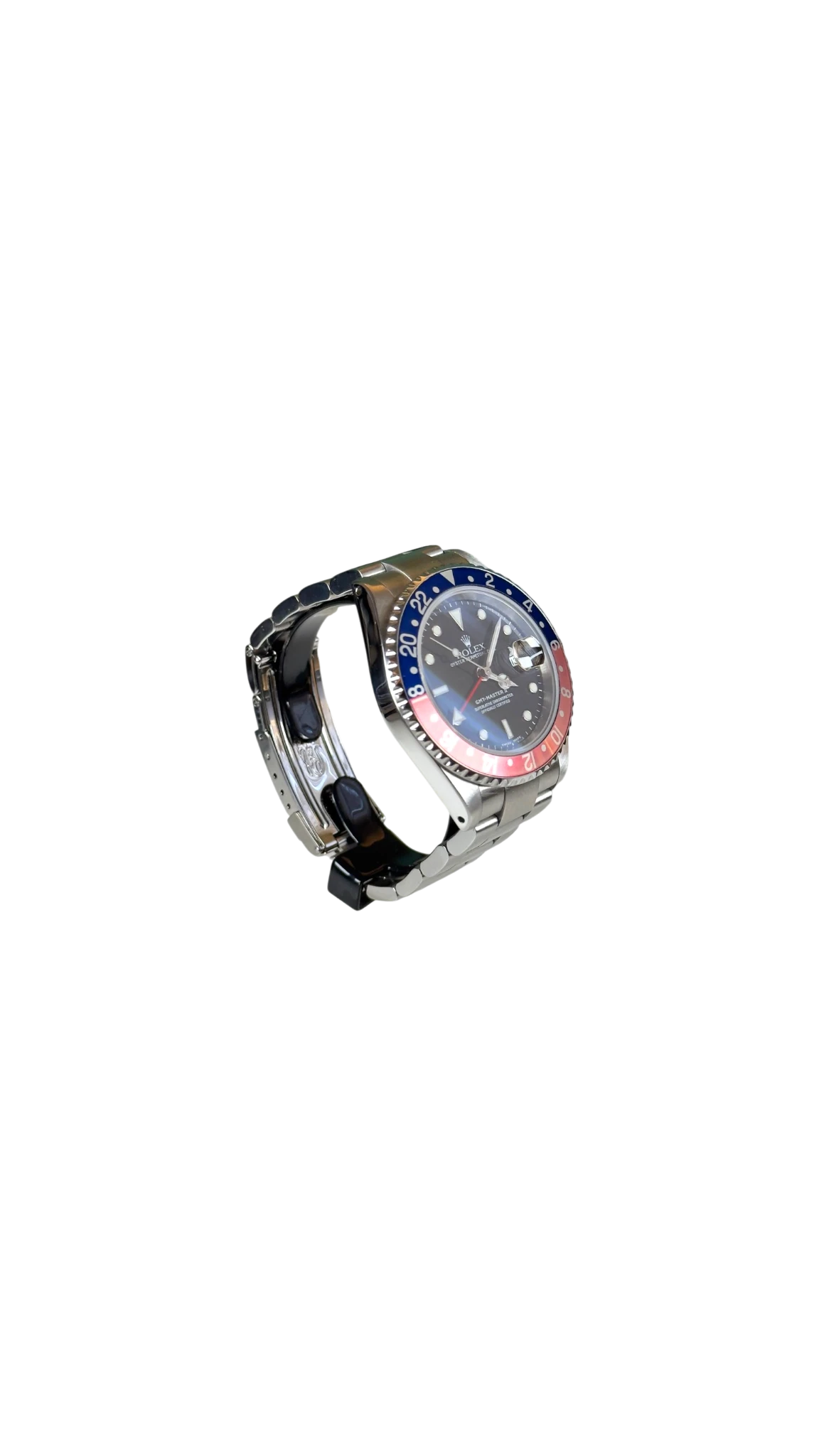 Rolex GMT-Master II Ref. 16710, soprannominato "Pepsi" per la sua distintiva ghiera bicolore rossa e blu, è un orologio da viaggio molto apprezzato, prodotto nel